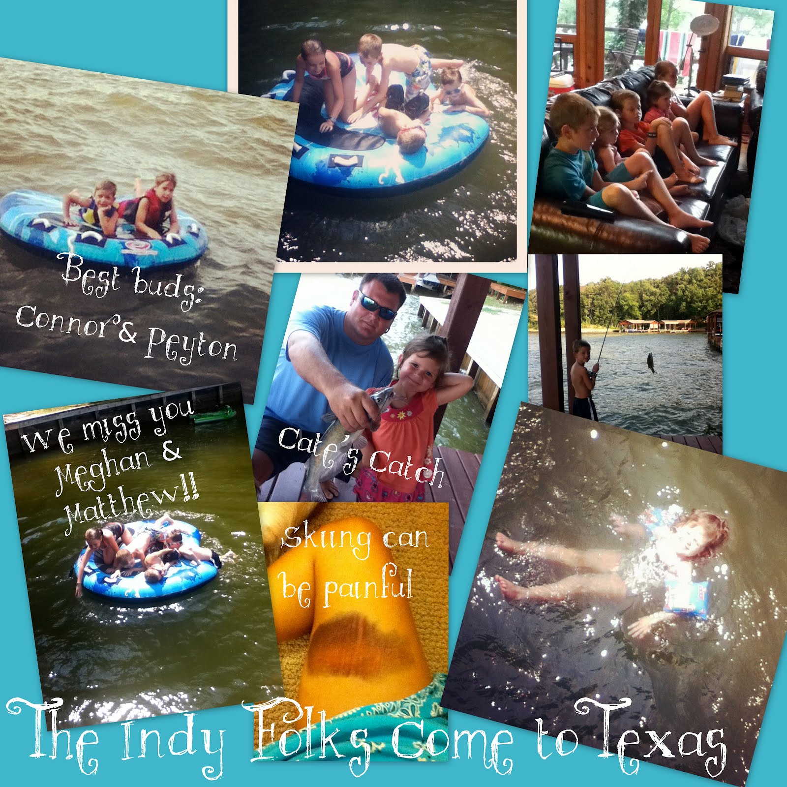 My family comes from the north--Lepperts, from Indianapolis. Dad's youngest brother brought his two kids, and my cousin and her hubby came with them. We 'laked' their whole visit. This included learning to ski for some, tubing, fishing, and a lot of swimming.